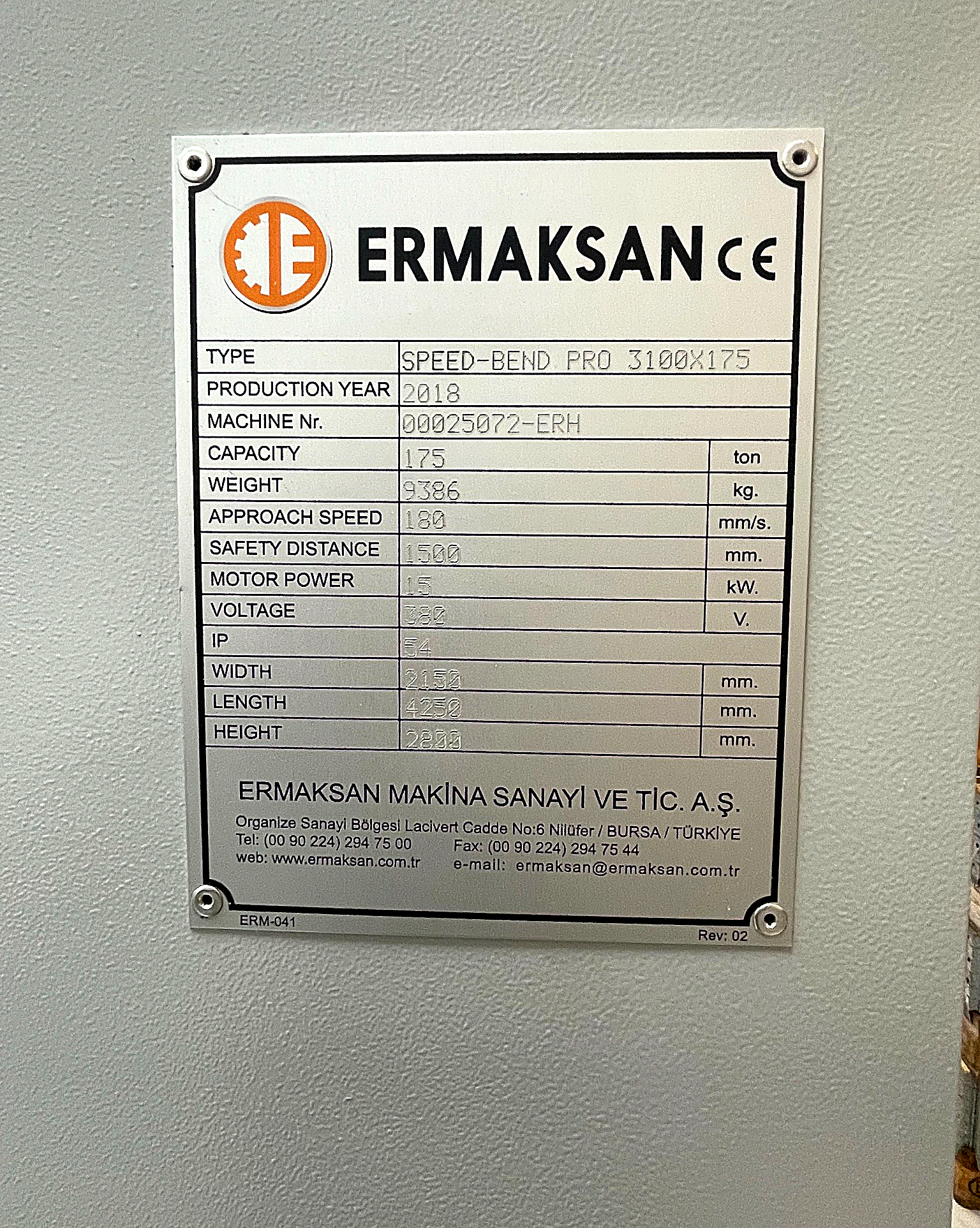 (SOLGT) Brugt CNC kantpresse Ermaksan Speed-Bend PRO 3100 x 175 TON